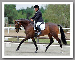 I purchased Faberge approximately two and half years ago (she was just turning 3 years old) from her breeder in the North Island. Faberge is an extremely well-bred warm-blood with a dressage pedigree. She is a 3rd generation of frozen semen by First Romancier out of a Sir Donnerhall/ Master mare. She has super movement for dressage and was born with a natural desire to want to move her feet.