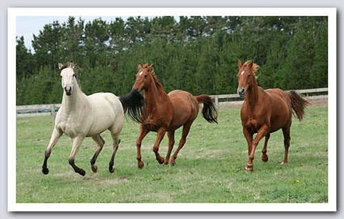 Persil (in the middle) enjoying a gallop with Zephyr and Merlot.