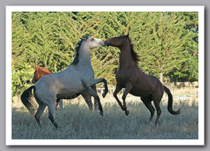 January - as you see, Persil, now 31years of age (we had his age verified by a horse dentist/vet) is still able to bounce around with his clown of a nephew...