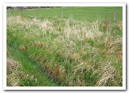 Lovely ‘Roadside grass’ long and fibrous – you can see how much fibre this would provide the horse compared to that in the grazed paddock in the background.