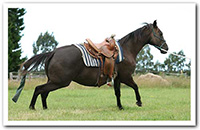 The horse trying to canter on the right, was suspected of having a fractured pelvis, when in actual fact it was all a grass problem. Once her diet was corrected she went on to compete again - see Milly's Story.