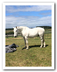 There was a lot of Cat’s Ear in Victoria’s paddock and her lovely big horse ‘Maximus’ developed Stringhalt. You can see from the video clip (below) that his legs are almost hitting his belly! He was also very tight in his muscles and couldn’t trot, canter or go backwards!